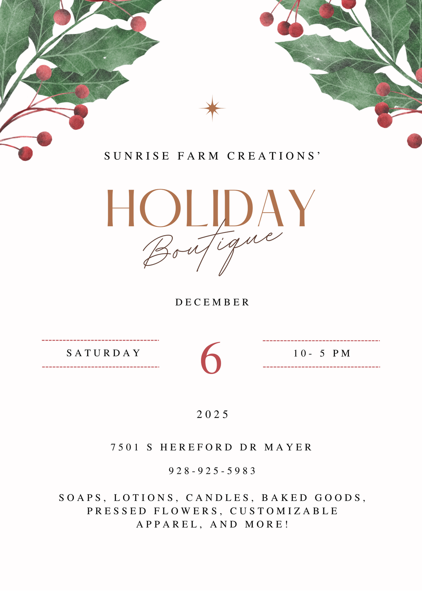 Come stock up on your soaps, candles, handcrafted Christmas ornaments, baked goods, gift baskets and more at the farm! We will also be having Third Day Flower Farm with pressed flowers and A Teacher’s Touch with customizable shirts, cups, etc.